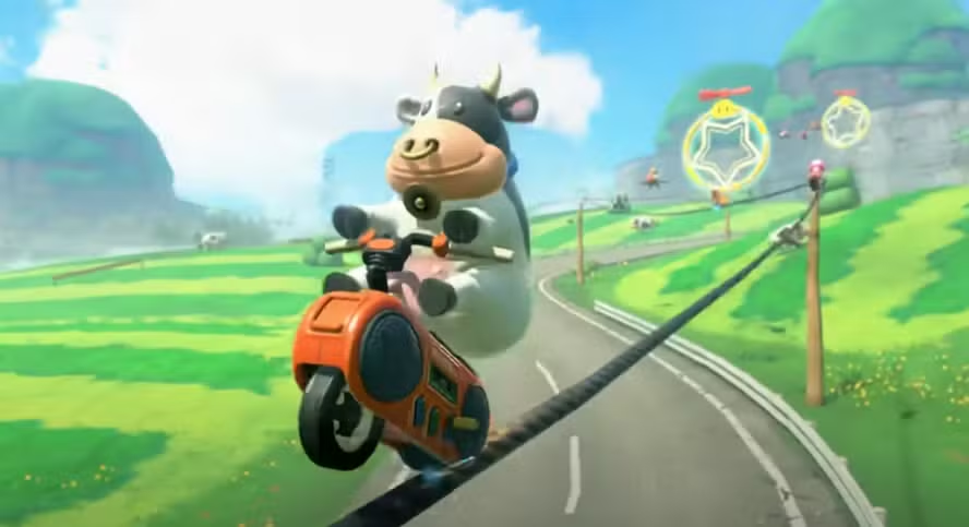 PETA critica Mario Kart World por personagem vaca com piercing no nariz
